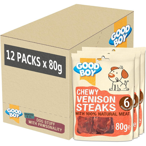 12 x Good Boy Chewy Venison Steaks 80g Full Case