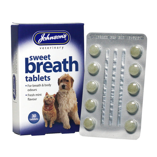 JohnsonsJohnsons Sweet Breath Tablets are suitable for cats and dogs.These tablets help with both breath and body odours.Fresh mint flavour.Directions for ...