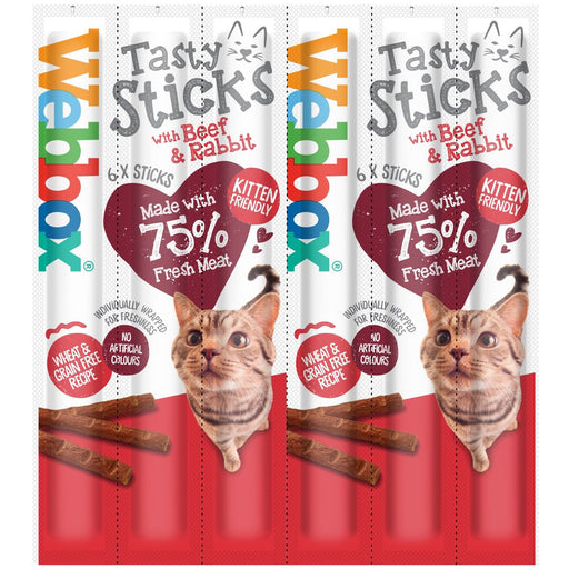 WebboxWebbox Cat Tasty Sticks with beef and rabbit are suitable for cats and kittens over 3 months.These tasty treats are wheat and grain free.Developed ...