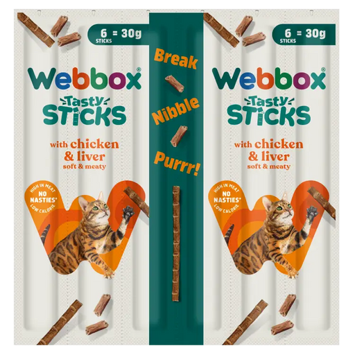 WebboxWebbox Cat Tasty Sticks with chicken and liver are suitable for cats and kittens over 3 months.These tasty treats are wheat and grain free.Develope...