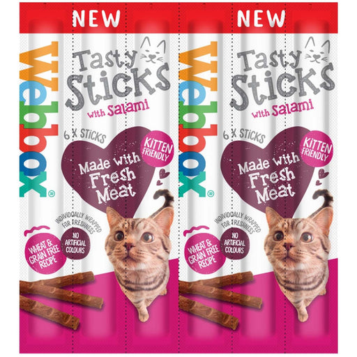 WebboxWebbox Cat Tasty Sticks with salami are suitable for cats and kittens over 3 months.These tasty treats are wheat and grain free.Low calories, high ...