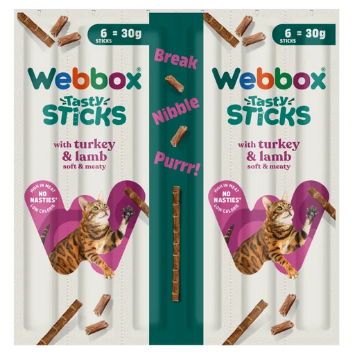 WebboxWebbox Cat Tasty Sticks with turkey and lamb are suitable for cats and kittens over 3 months.These tasty treats are wheat and grain free.Developed ...