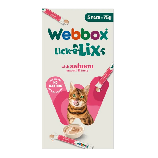 WebboxWebbox Salmon Lick-e-Lix come in convenient single-serve sachets. These smooth and delicious snacks can be given as treats, used as food toppers, o...