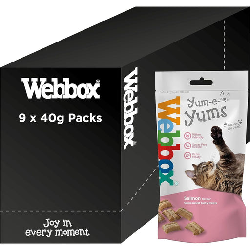 WebboxWebbox Yum-e-Yums Salmon are semi-moist, extra-meaty complementary treats that cats adore.Suitable for cats and kittens over 3 months old.Supports ...